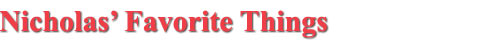 Capturing and maintaining a list of favorite things for Sheila and our boys has been a way to track what they like for a variety of purposes. Following is the last list of Nicholas' favorites. You can hear some of his other favorites by listening to his Song Of Love under About Nicholas > More About Nicholas > Sound Tracks > Song Of Love.